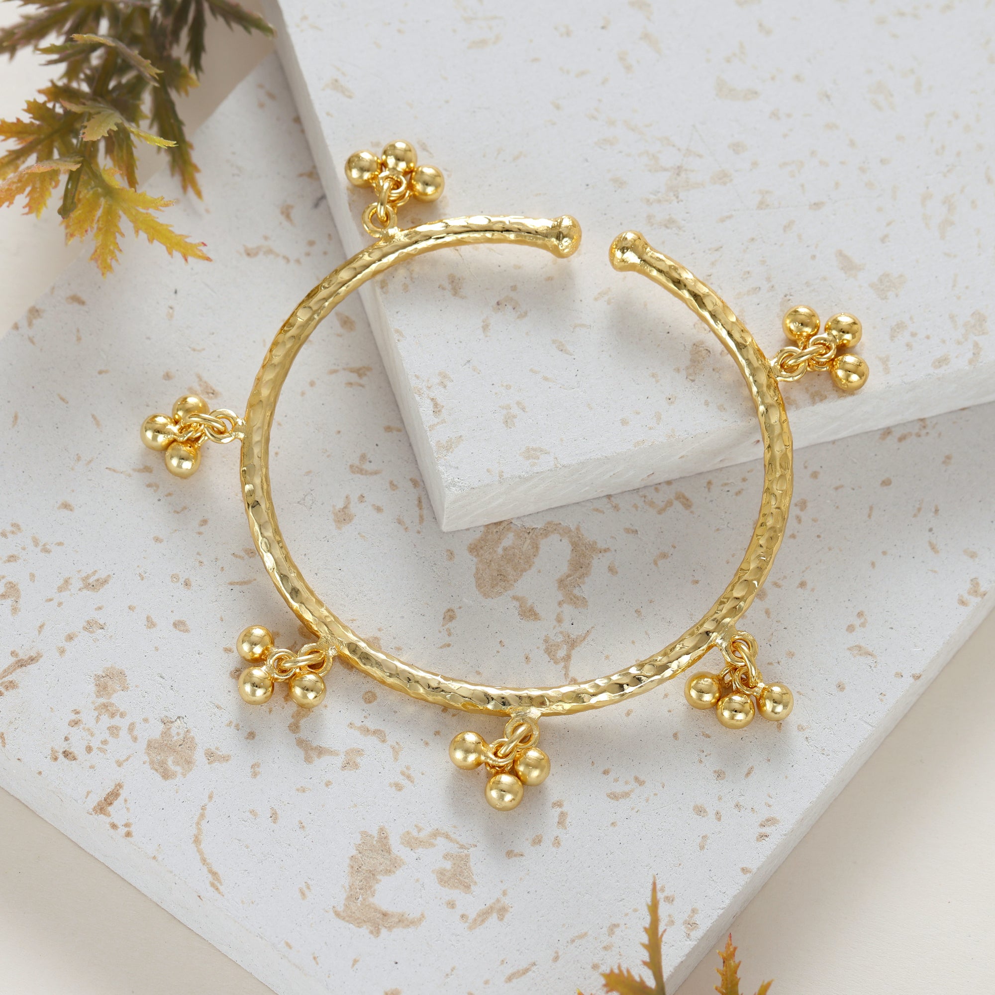 "DANCING BELLS GOLD CUFF BRACELET" is inspired by Indian musical instrument worn around the ankles by dancers i.e. Ghungroo. Ghungroo is also associated with spirituality and cultural significance.