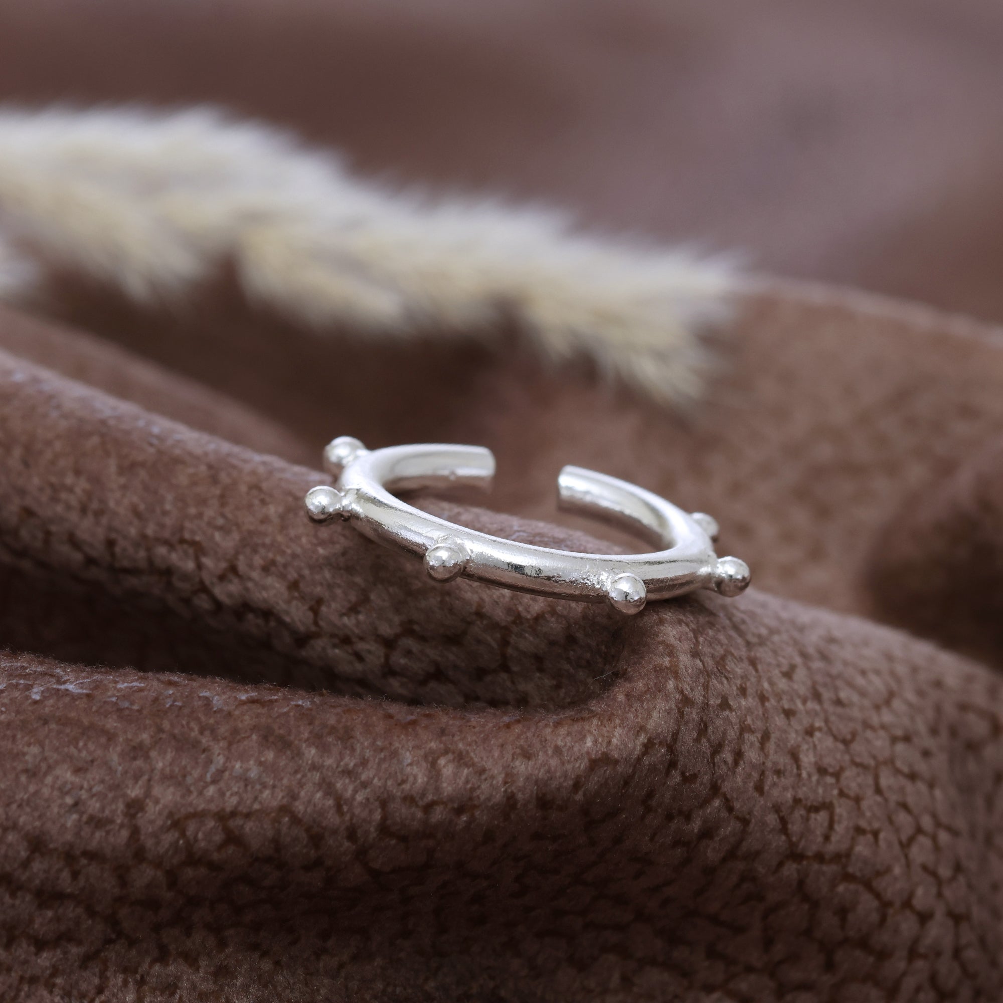 "DROPLET SILVER RING" is inspired by the delicate beauty of dew drops of water that form on different surfaces outdoors during the night. Dew Drops symbolizes beauty , love, peace, holiness, grace and joy. Each piece reflects the serene elegance and natural shimmer of these tiny drops, capturing their translucent glow and ethereal charm.