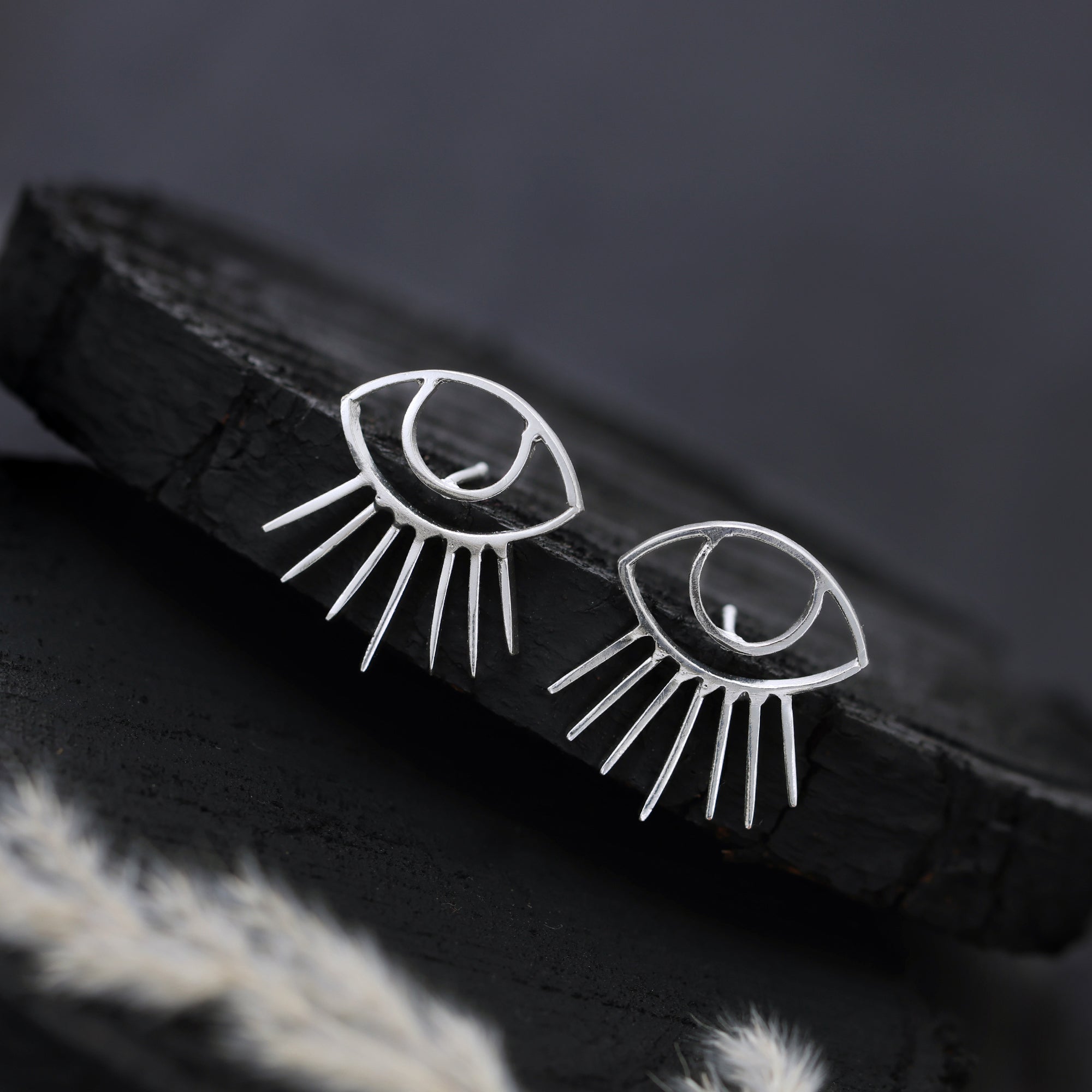 "EYE LASH SILVER STUD EARRING" delicate yet striking, inspired by the graceful curve and flutter of natural eyelashes. These studs feature a fan-like arrangement that mimics the soft taper of lashes.