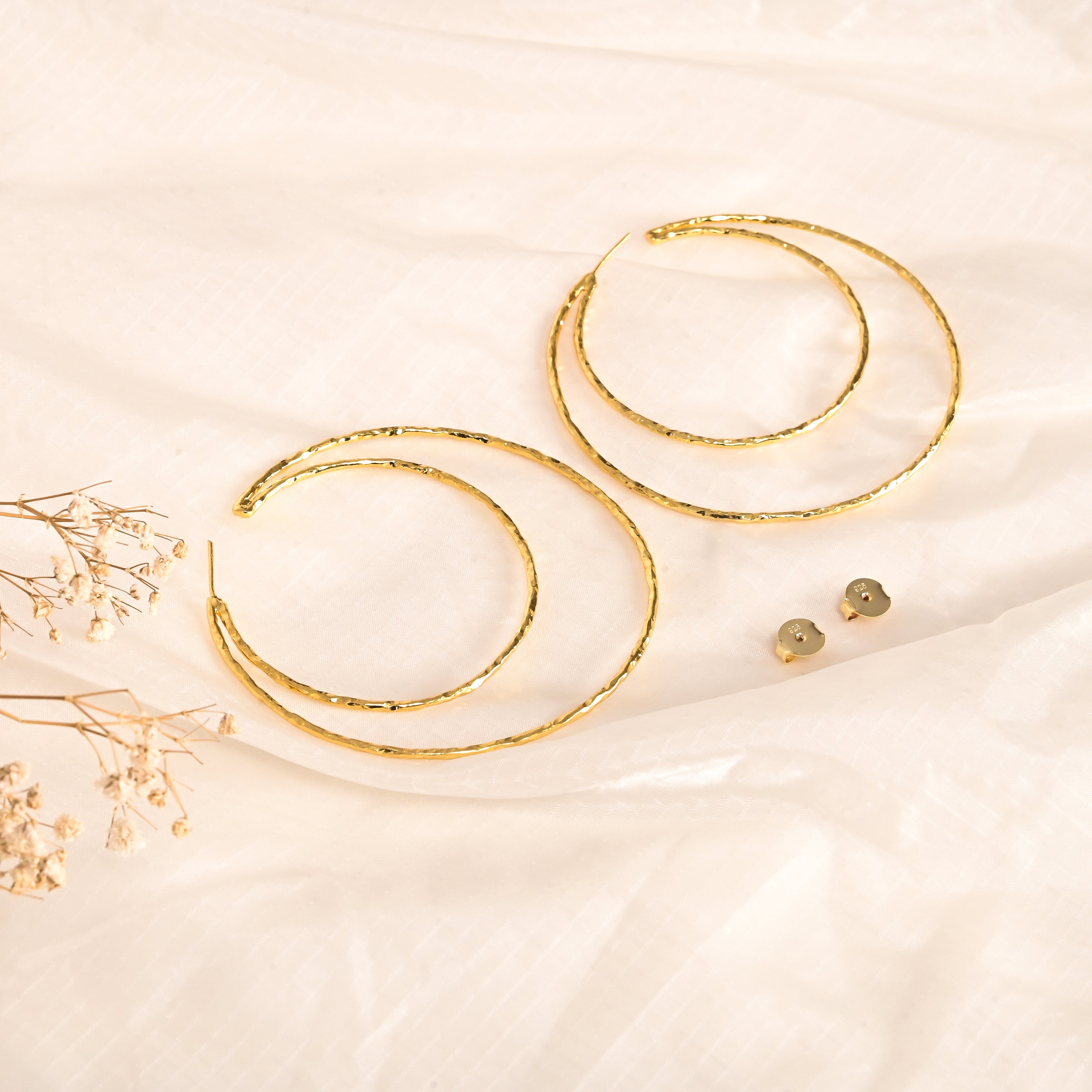 "FORGE GOLD HOOPS EARRING" is inspired by the raw natural beauty of tree sticks, symbolizing strength, growth, and resilience. The design captures the intricate, organic lines of tree branches, with each piece echoing the way nature weaves its path through time.