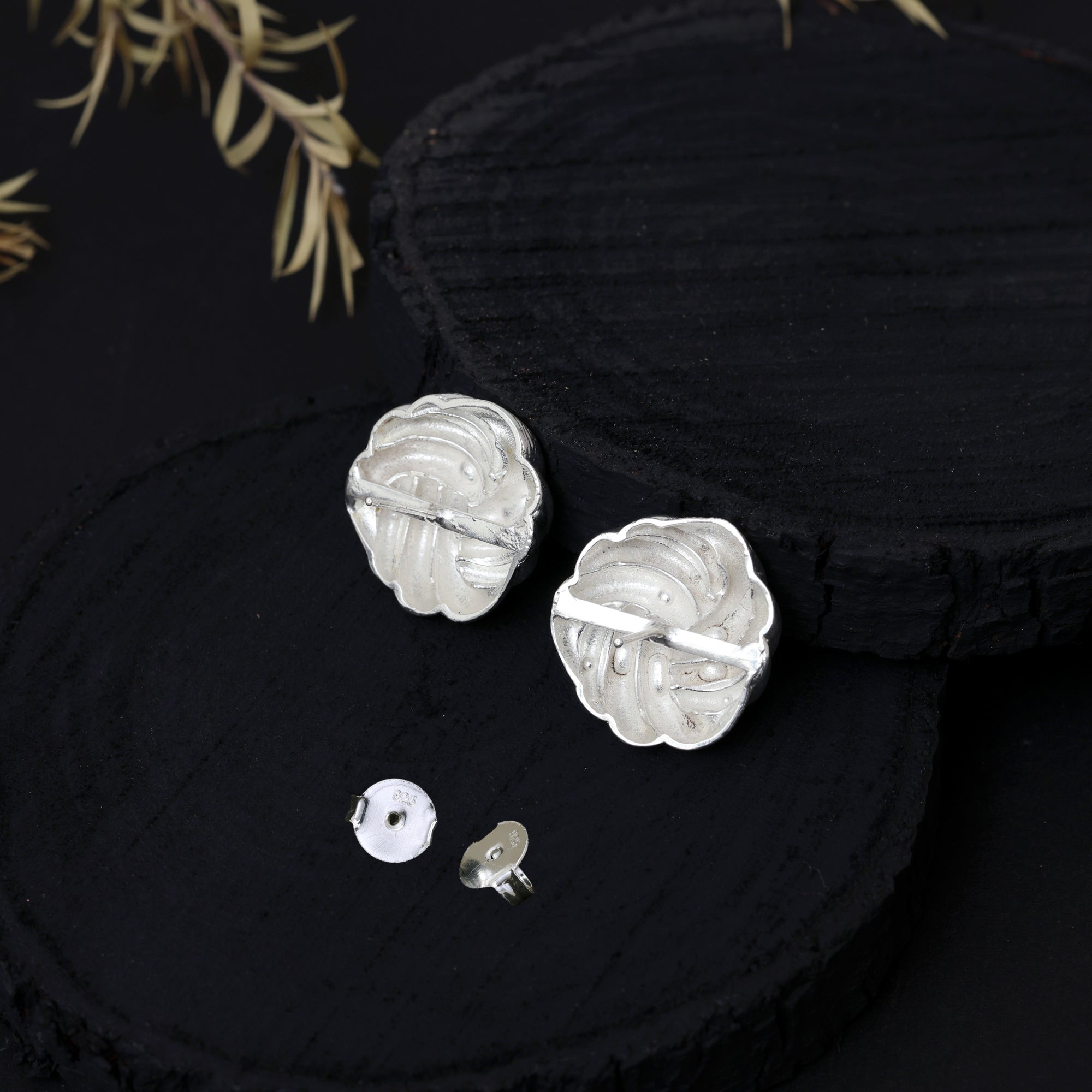 "KNOT ETCHED SILVER STUD EARRING" a stunning design inspired by the timeless elegance of knots. This ring features intricate, knot like layers that symbolize strength, connection and unity. The knot earring features alternate knot layers adorned with intricate handmade textures, adding depth and uniqueness to the design.