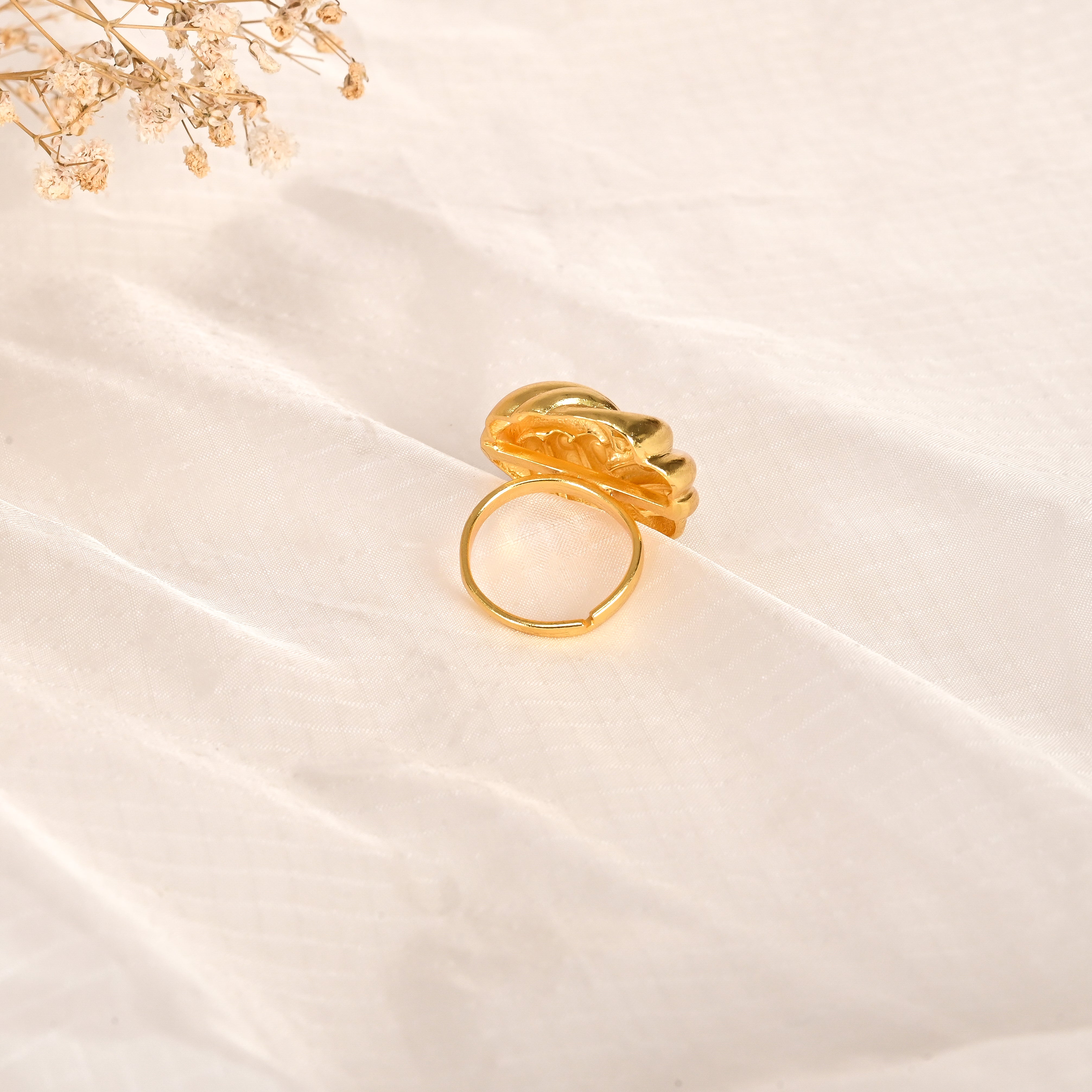 "KNOT FLUID GOLD RING" a stunning design inspired by the timeless elegance of knots. This ring features intricate, knot like layers that symbolize strength, connection and unity. Its polished surface, described as fluid, enhances its sleek and modern appeal, creating a seamless blend of artistry and sophistication.Â