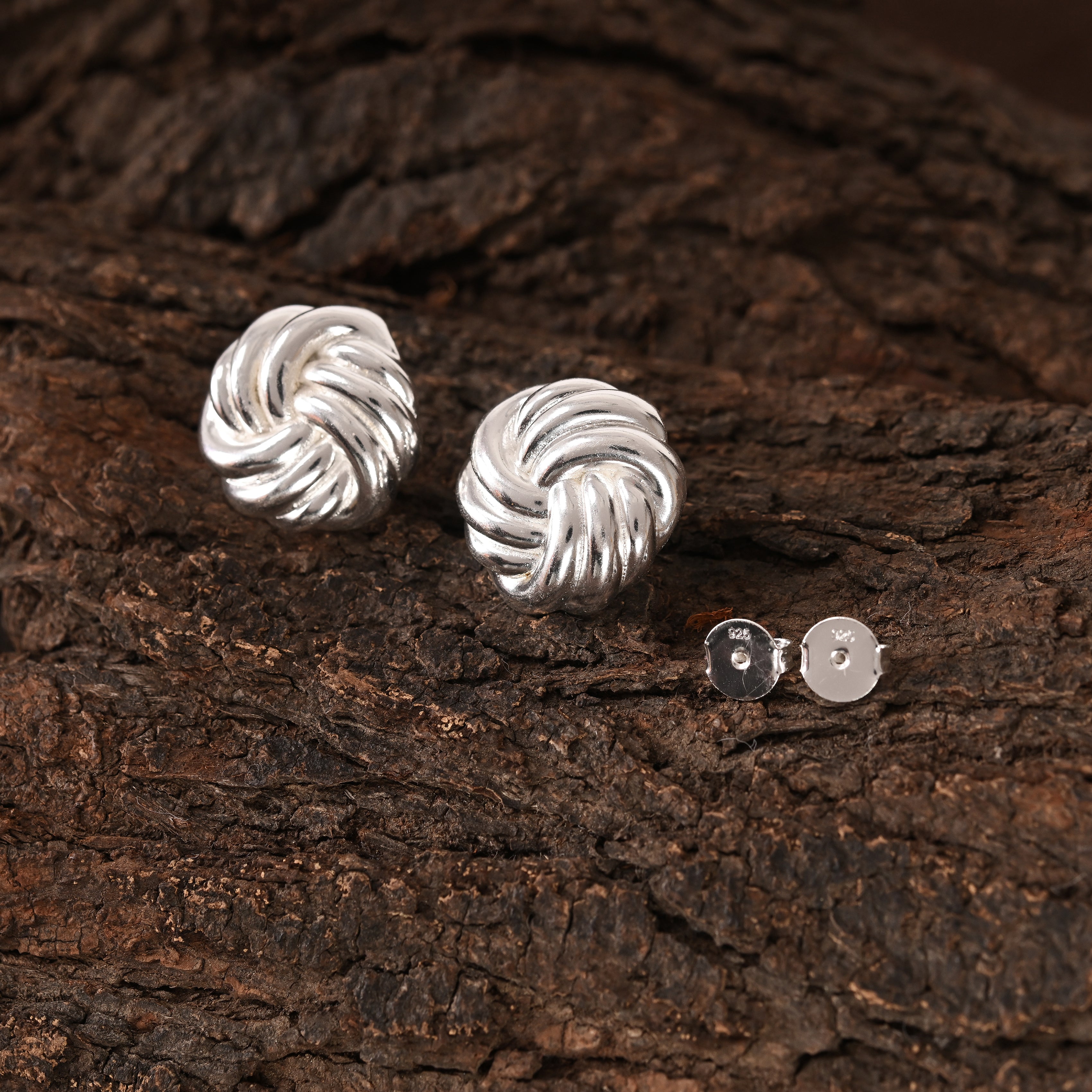 "KNOT FLUID SILVER STUD EARRING" a stunning design inspired by the timeless elegance of knots. This earring features intricate, knot like layers that symbolize strength, connection and unity. Its polished surface, described as fluid, enhances its sleek and modern appeal, creating a seamless blend of artistry and sophistication.Â