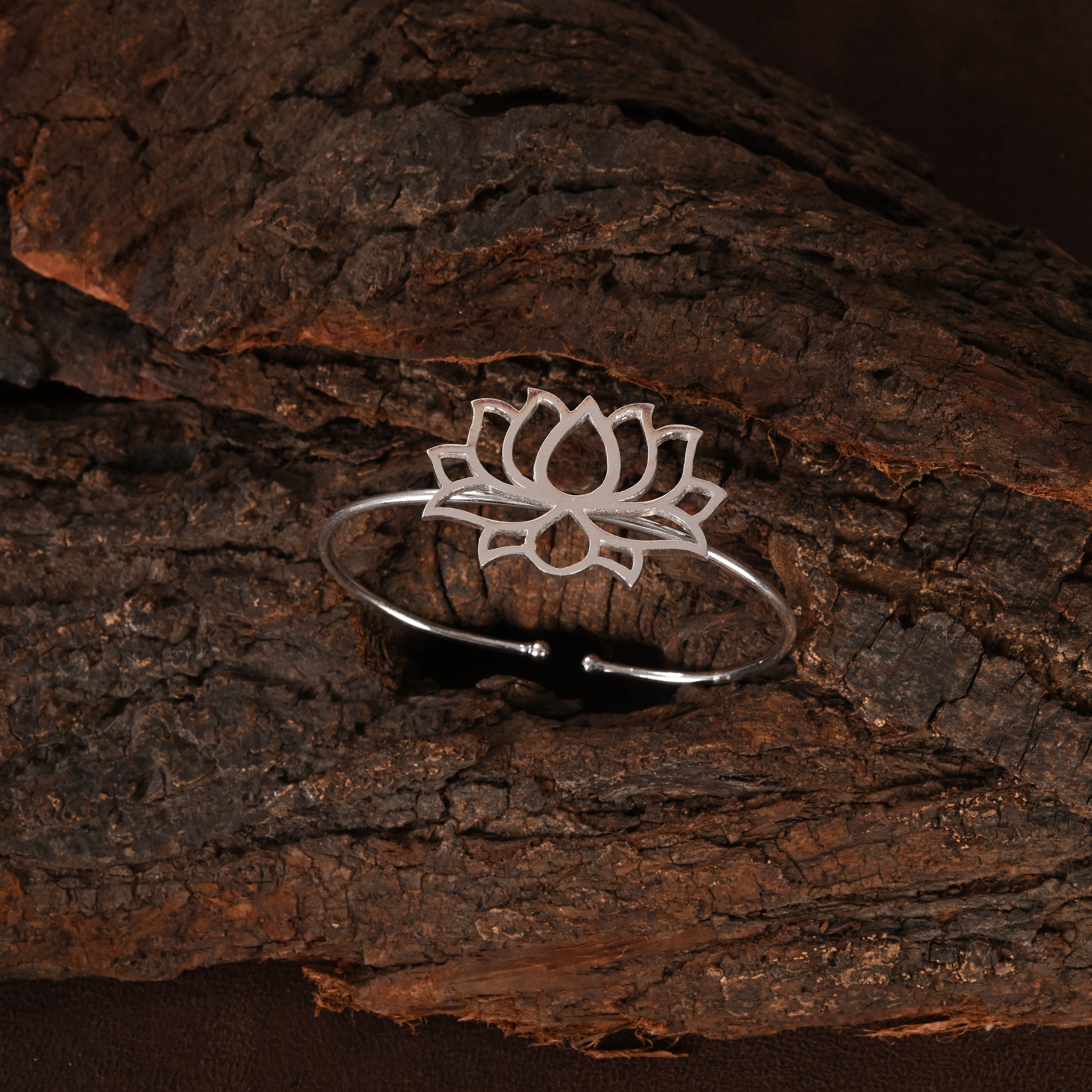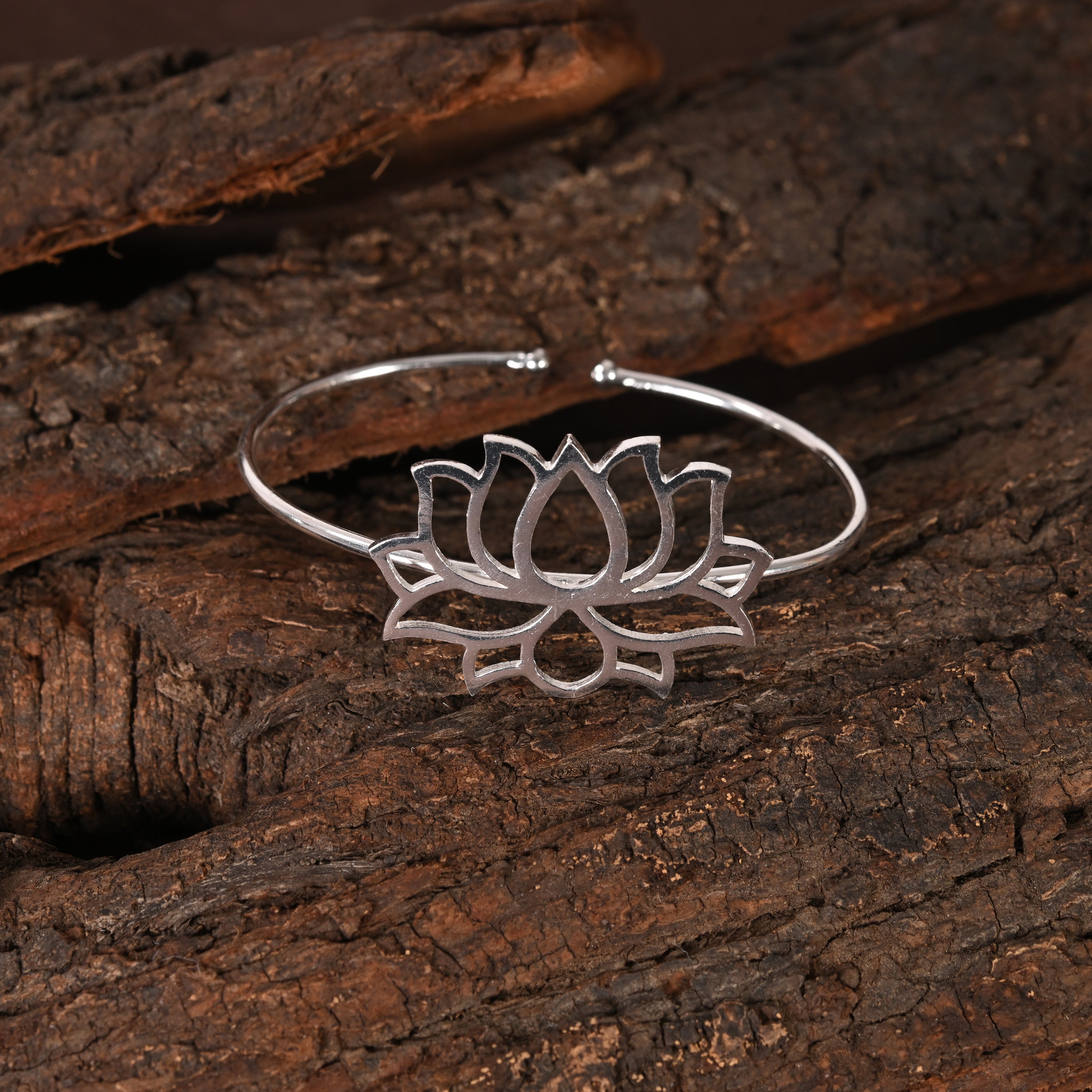 "NEERAJA SILVER CUFF BRACELET" is inspired serene beauty of the lotus, symbolizes purity, enlightenment, and spiritual growth. The name neeraja itself meaning "born in water" embodies the connection between nature and inner peace.